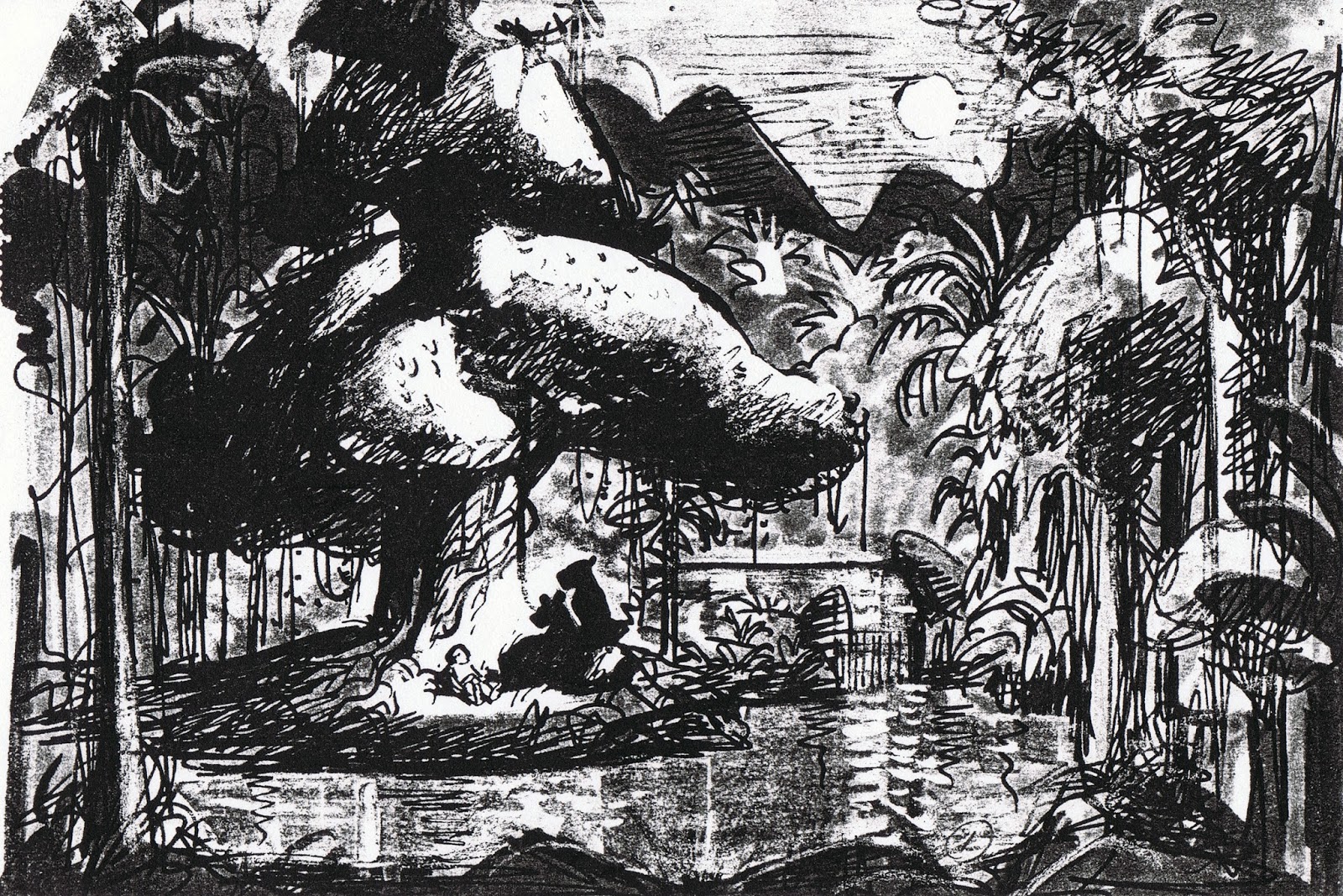 Ken Anderson was was an artist who enjoyed exploring environments as well as characters for Disney films. In his days that was somewhat of an exception, most artists at the studio focused on one of the two categories.