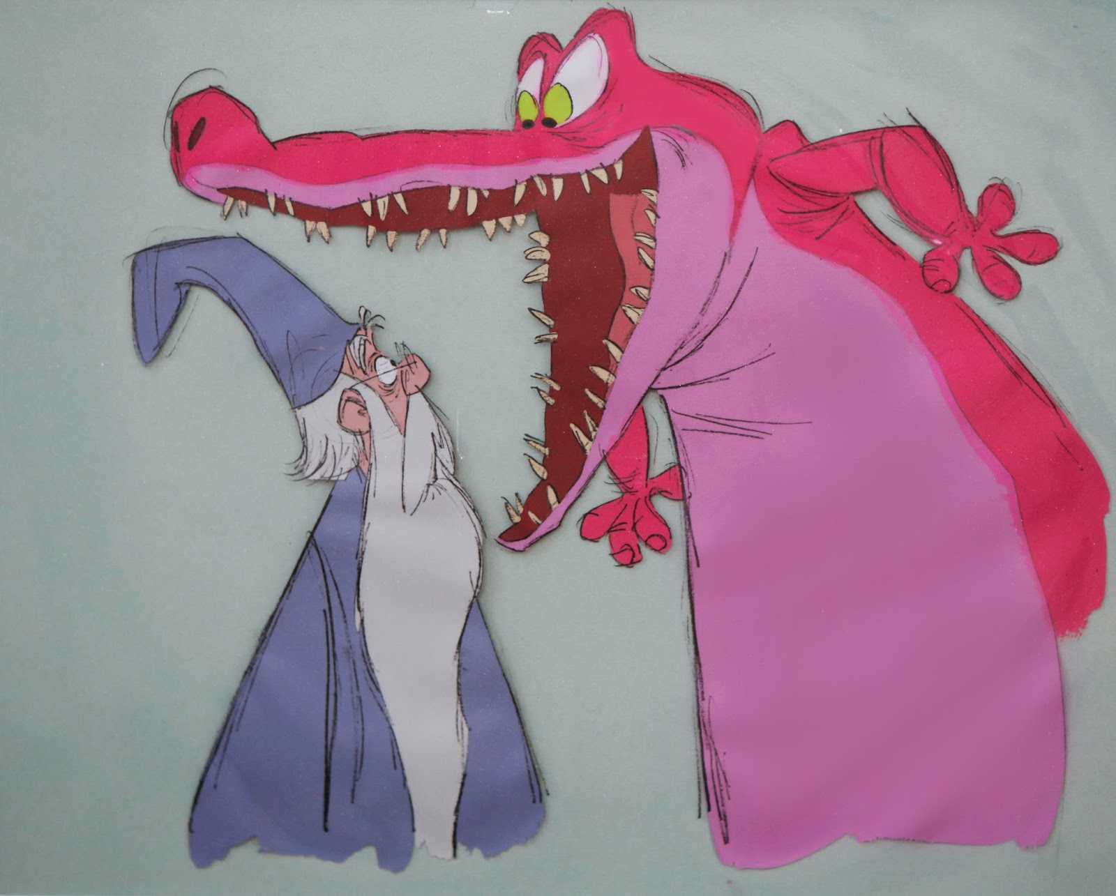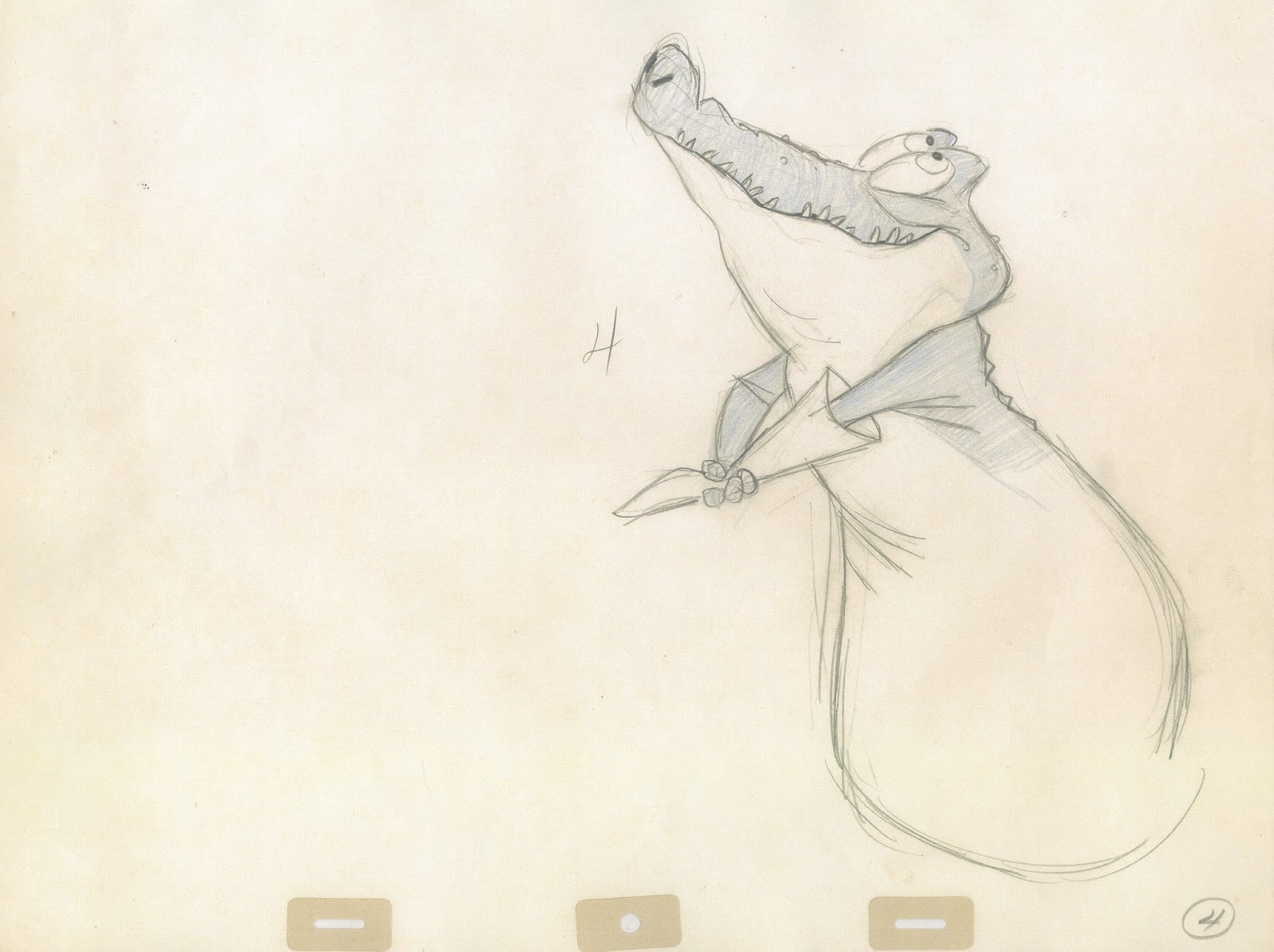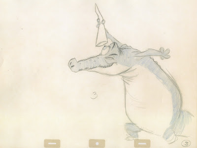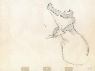 These are some of the best Milt Kahl drawings you will ever see. Character designs of Madame Mim as a crocodile. Milt did a thorough exploration of this creature, even though the croc is on the screen for only six short scenes.