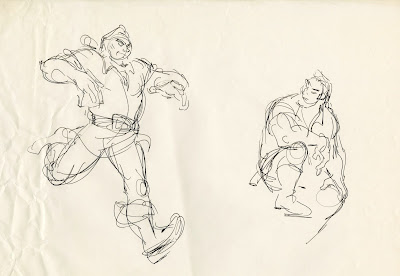 I drew these poses off a TV monitor while I was studying the live action reference.
