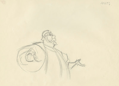 This is a rough in-between for an early scene that was cut from the movie. At that time Milt drew the Prince with a sharp nose tip.