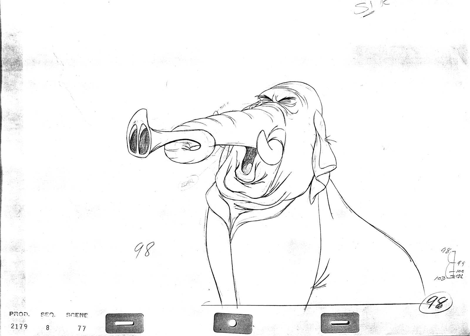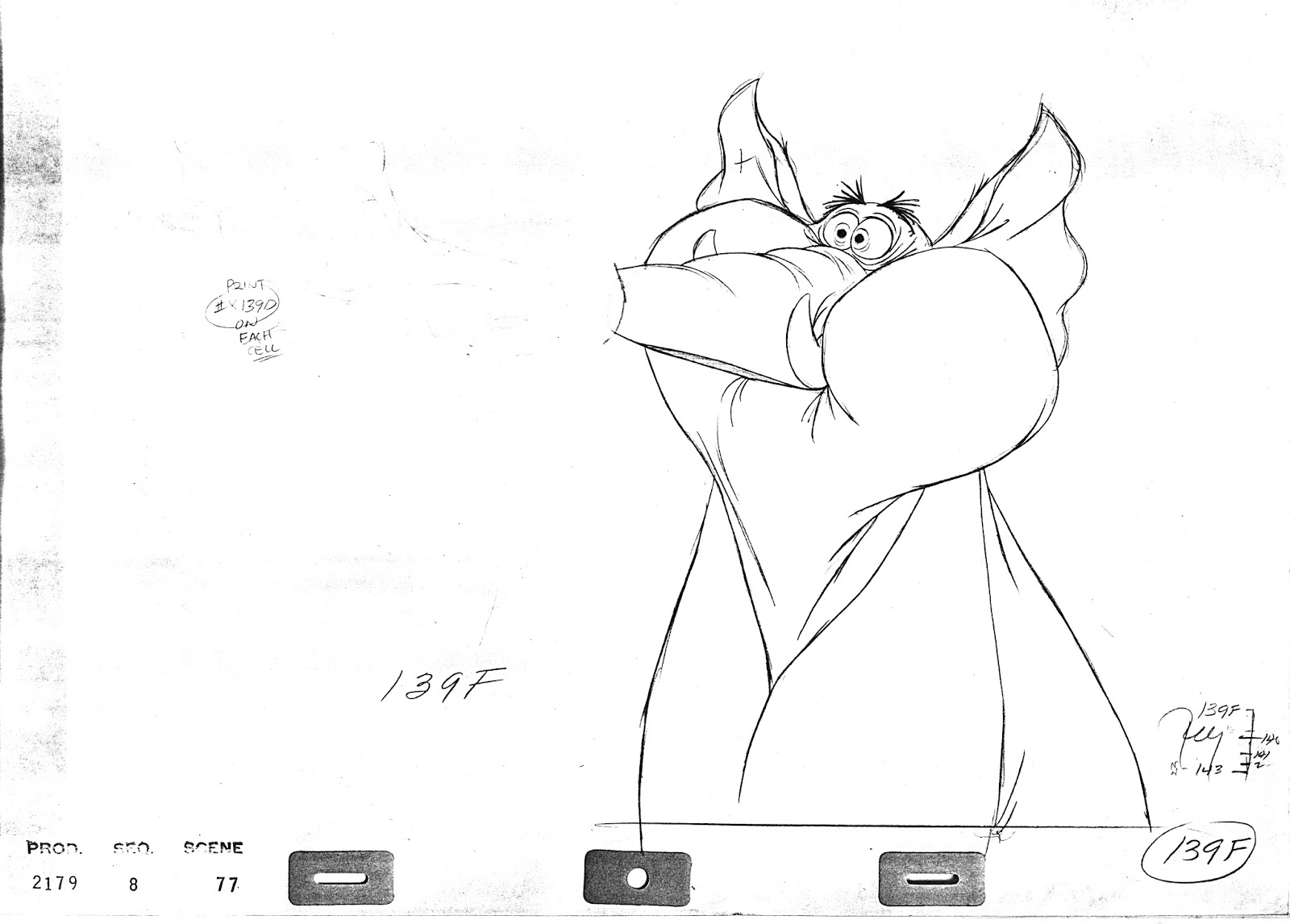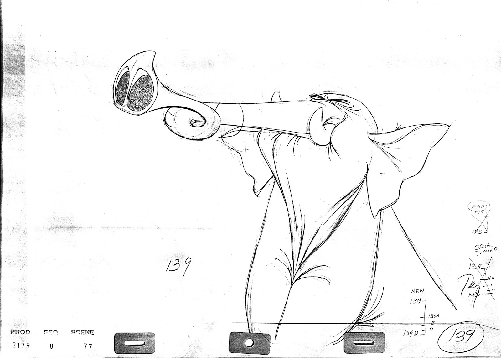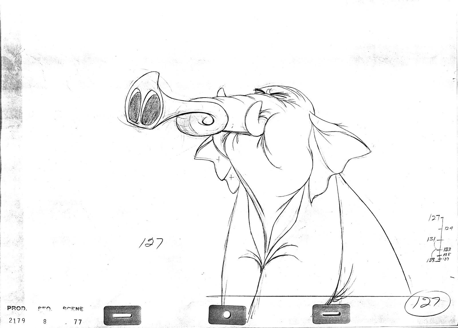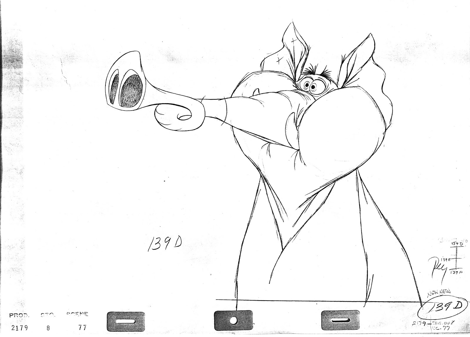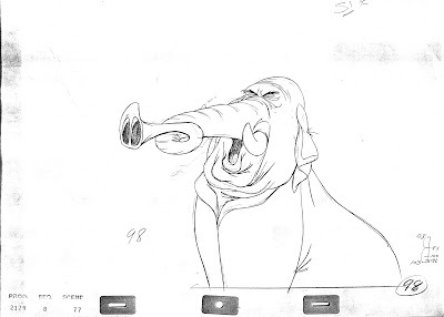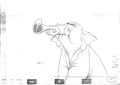 John Lounsbery animated this hilarious moment from The Jungle Book. Colonel Hathi prevents the Bugler elephant from sounding the alarm prematurely.