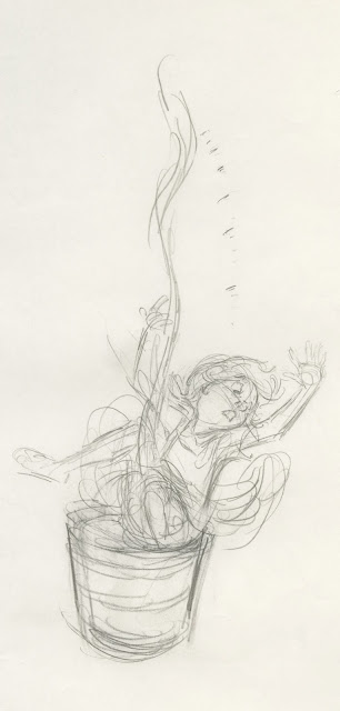 When drawing this rough, Milt's enormous power for analyzing and staging a character comes to the surface.