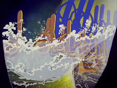 Beautiful art deco ripples appear as the crane takes a drink. From Fantasia's removed sequence