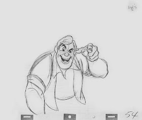 He is a rich character, full of confidence and full of himself. Milts animation shows just the right amount of dash and bounce. Although the style of the film is pretty cartoony Brom Bones' physique required careful and somewhat realistic draughtsmanship in terms of anatomy.